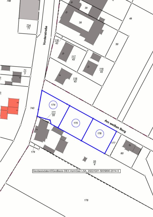 Fläche der Baugrundstücke: zwischen 707 m² und 709 m²